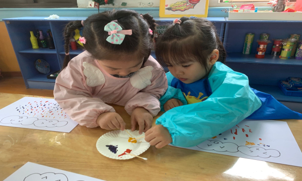 下雨了!下雨了!每到下雨天,小朋友们就特别激动。看着落在地上的小雨点,他们就问老师:老师,老师,怎么让这些小雨滴留下来呢?2019年11月12日,常州市天宁区吉的堡幼儿园小班开展了有趣的棉签点画活动《彩色的雨滴》。