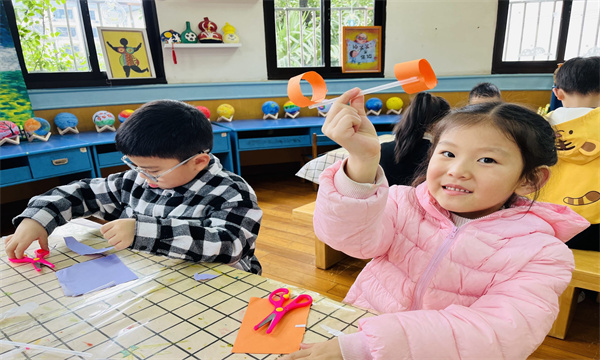 本次STEAM活动以问题为导向、提升主动探究为路径,让孩子熟练运用各种辅助工具,了解指环的形状。最终让神奇的指环飞机利用手臂的推动力,在空中飞行一段时间。在制作过程中,孩子们全情投入,不断尝试剪出指环的不同大小,小心的黏贴到吸管上,通过“试飞”,两两竞赛,和每一个人友好合作、互相帮助,寻找可以飞的更久的办法。